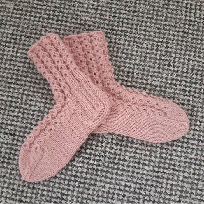 Vaalean roosat sukkalangasta kudotut villasukat kokoa 29/30.