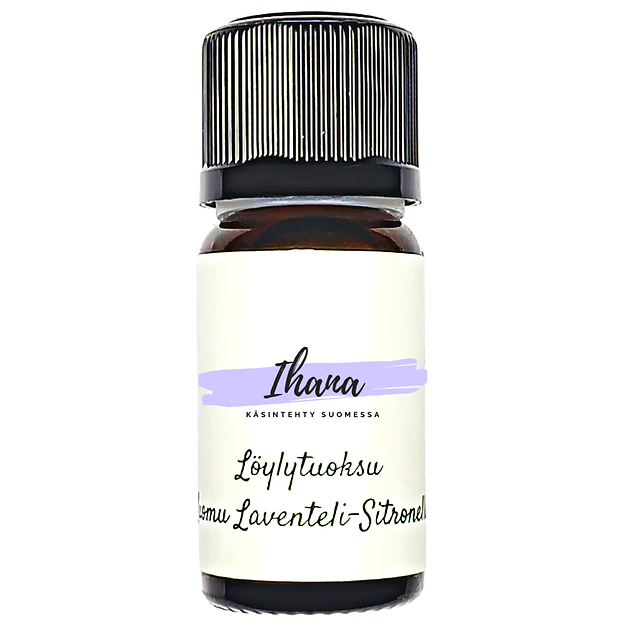 Ihanan rauhoittava ja kevyesti virkistävän sitrusmainen tuoksu syntyy luomu laventeli öljystä ja luomu sitronella öljystä.