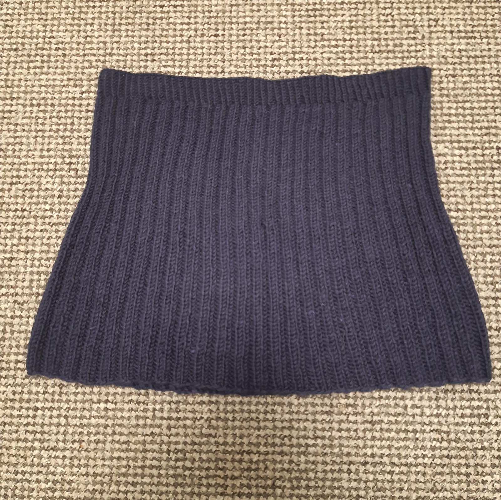 7 veljestä langasta neulottu tummansininen pyllytin. Korkeus n.35 cm . Menee n.120 cm lantiolle saakka.