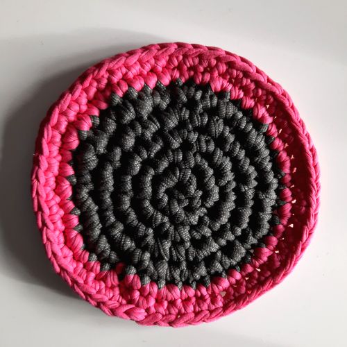 Matonkuteista virkattu pyöreä pannunalunen, halkaisija 18 cm. Jokainen on uniikki, joten pieniä eroja löytyy.